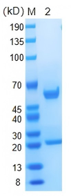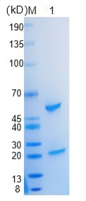 SDS-PAGE 检测结果:还原条件下,重组抗体呈现约 50 kDa 的重链和约 25 kDa 的轻链条带,纯度高、结构完整。