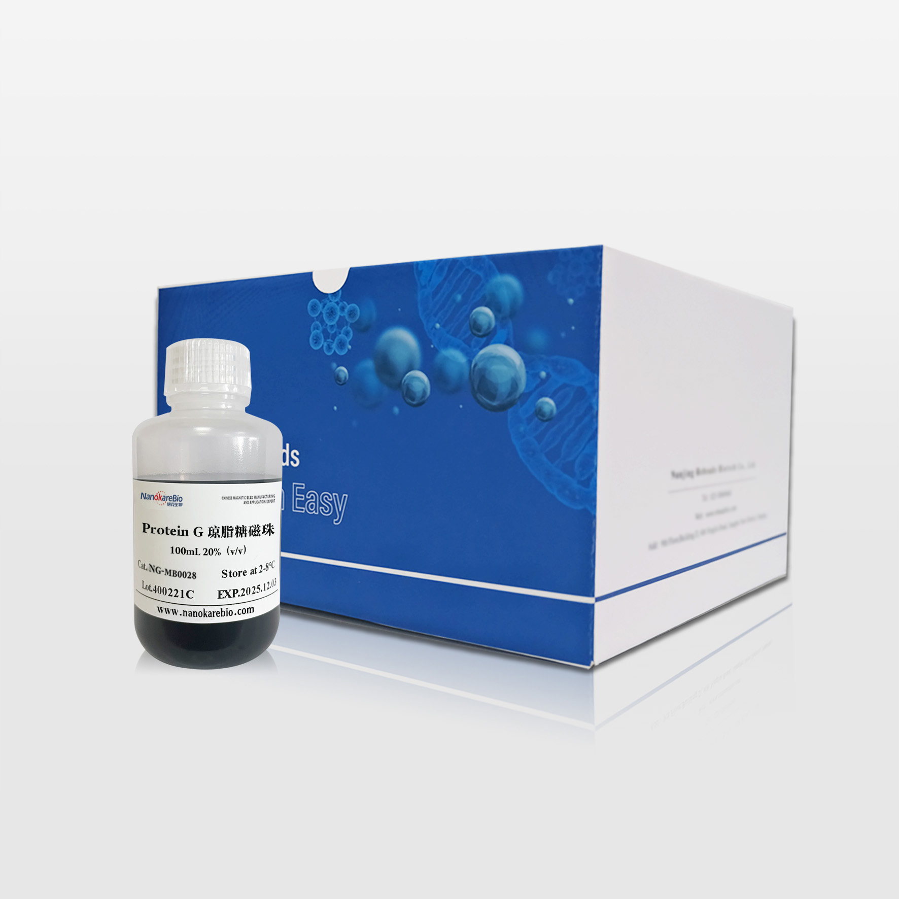 | 描述 | 纳克生物研发生产的Protein G磁珠(Protein G 磁珠),也称Protein G免疫磁珠,是由活化的磁性微球与高质量的重组Protein G共价结合形成的复合微粒。可特异性地结合相应抗体,主要用于免疫沉淀( IP)、免疫共沉淀(Co-IP)或染色质免疫沉淀(Ch-IP),也可以用于血清、细胞培养上清液或腹水等样品中抗体的纯化等。 |