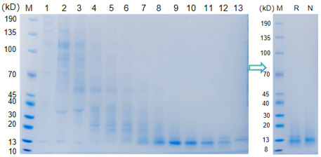 蛋白放大表达 纯化(1-2步亲和纯化) QC分析(A280、SDS-PAGE等) |